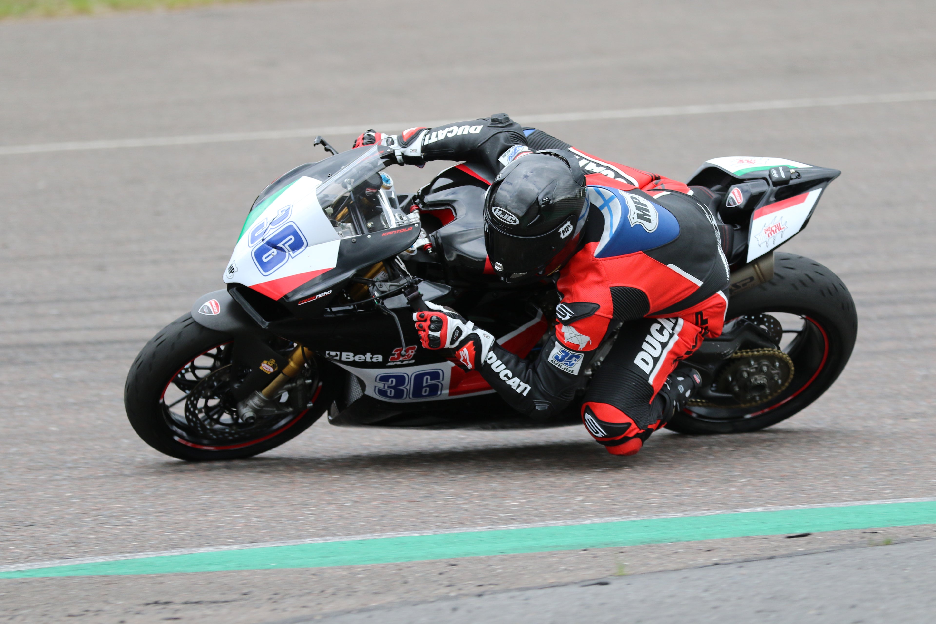 Hyvin istuva nahkapuku on racing-kuskin yksi kriittisimmistä välineistä niin turvallisuuden kuin myös ajomukavuuden saavuttamiseksi Juho luottaa SWEEP:in pukuihin kaudella 2025. Tämä nahkapuku on valmistettu täysin Juhon omien mittojen mukaan varmistaen parhaimman mahdollisen istuvuuden kaikkialta, sekä yhteensopivuuden nykyisten kilpasäädösten mukaisten airbag-liivien kanssa.