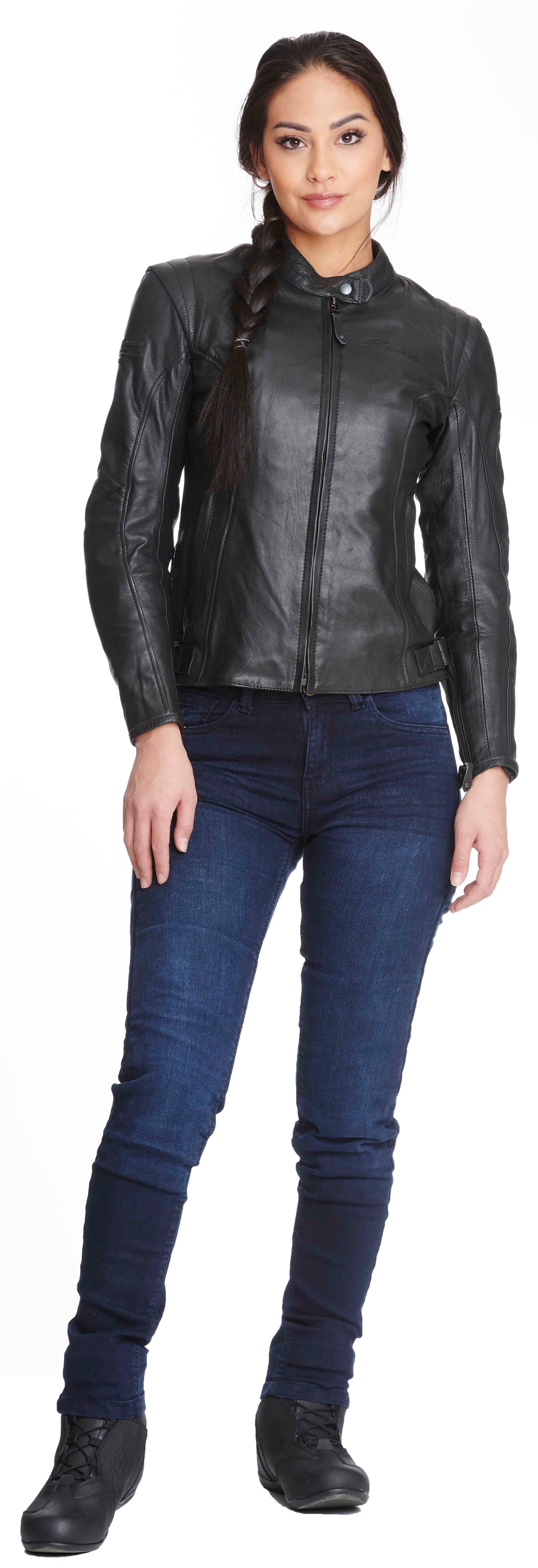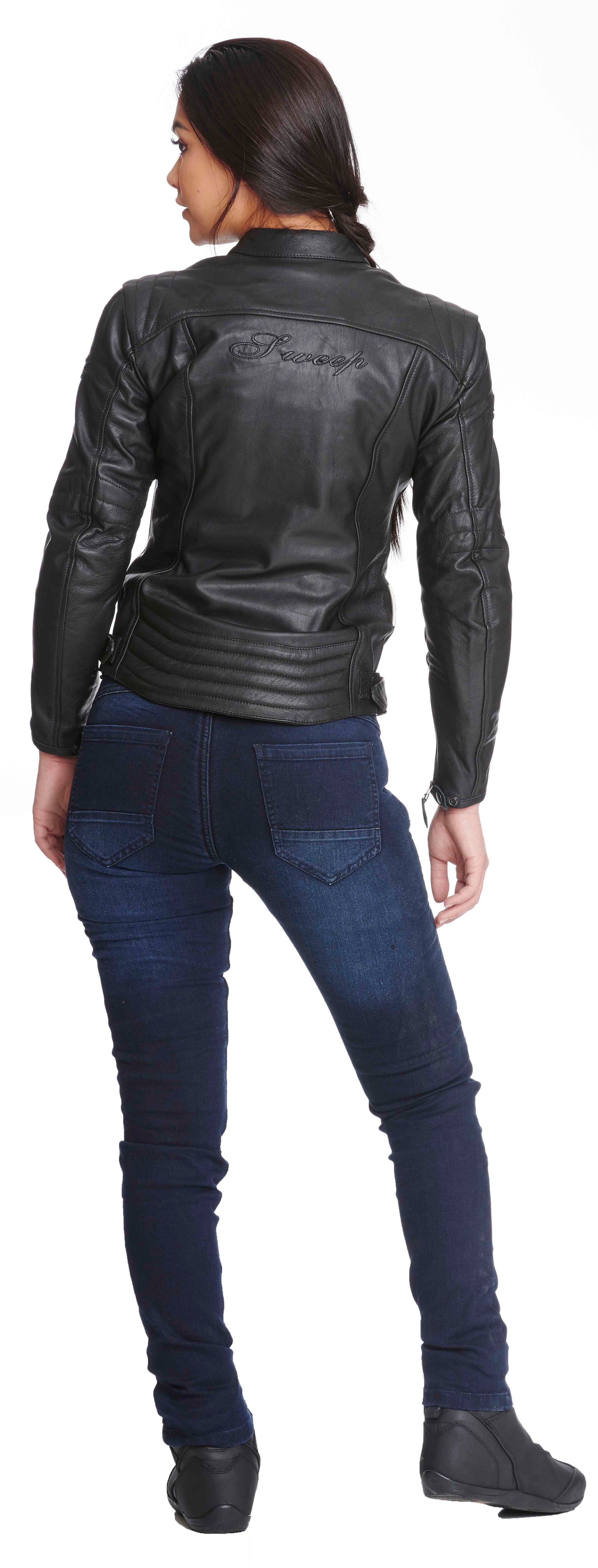 Sweep Mamba nahkatakki on tehty laadukkaasta ja pehmeästä pintanahasta joka omaa erinomaisen hankauskestävyyden ja repäisylujuuden. Takin vartalomuotoja hivelevät leikkaukset korostavat naisellisen vartalon parhaimpia puolia. Kaunis, yksinkertainen takki kulkee mielellään mukanasi hiljaisilta mutkateiltä nopeille moottoriteille.